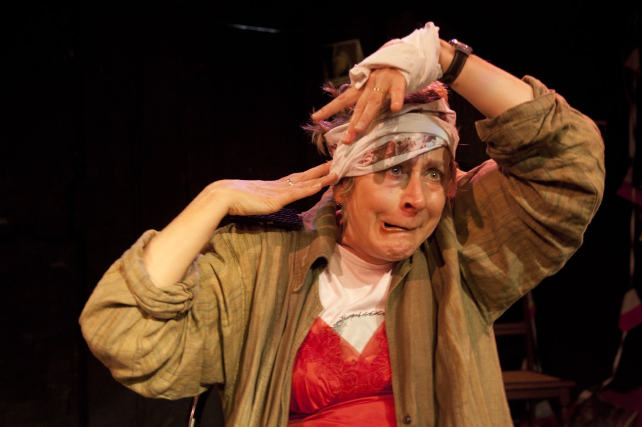 WHO? — Karen Corbett is a highly awarded writer, performer and theatre director, winning the German Medal of Ulm for one-woman show Orphanage of the Animals — in this image performing a dog, ‘World’s fucked, you’re an idiot if you reckon it’s not’ and the Murray Sutherland Prize for Outstanding Achievement and Contribution to Theatre for one-woman show To The Outside World, co-authoring the play on Sylvia Plath’s life, The Girl Who Wanted to Be God, nominated for two Premiere’s Awards. On a brief break as a trauma therapist, she is performing in unHOWsed, a theatre project she co-devised on older women’s homelessness.