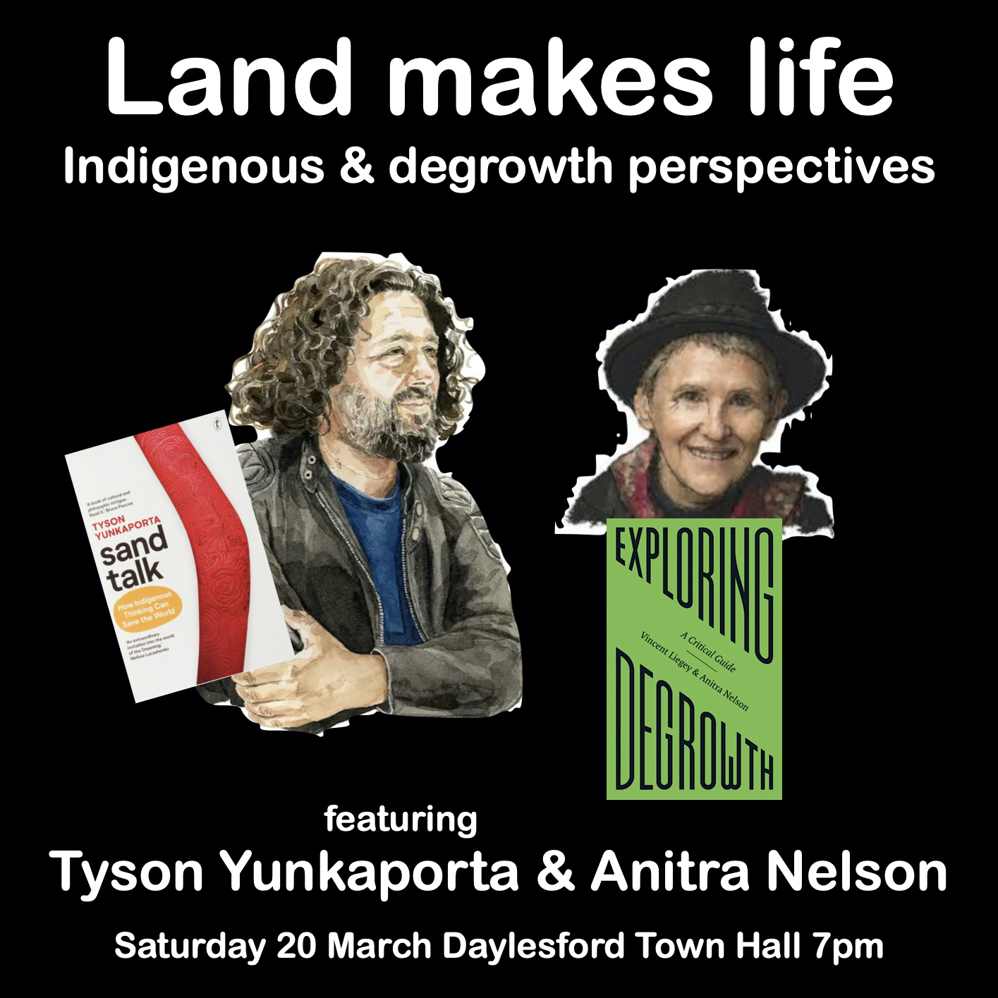 Tyson Yunkaporta (Sand Talk) on sustainability, in conversation with Anitra Nelson on degrowth (Exploring Degrowth and Food for Degrowth) at 7pm on Saturday 20 March at the Daylesford Town Hall — MC Patrick Jones — with Q&A. Hosted by Artist as Family’s School of Applied Neopeasantry and Hepburn Relocalisation Network. Video recording, here.